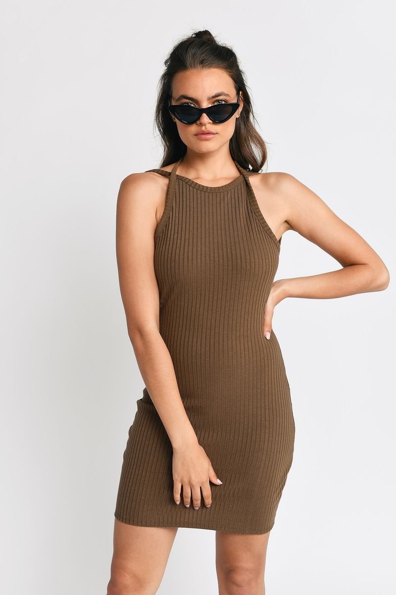 Make waves in the Kiss Me Ribbed Backless Mini Dress in Taupe! This captivating mini dress features a textured ribbed design and a daring backless detail that flatters your figure perfectly. Ideal for any night out or special event, it effortlessly combines chic and sexy. Shop now and own the spotlight!